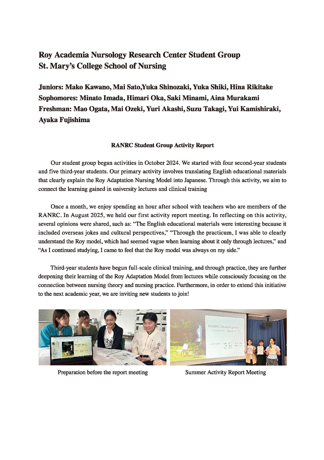 Roy Academia Nursology Research Center St.Mary's College
